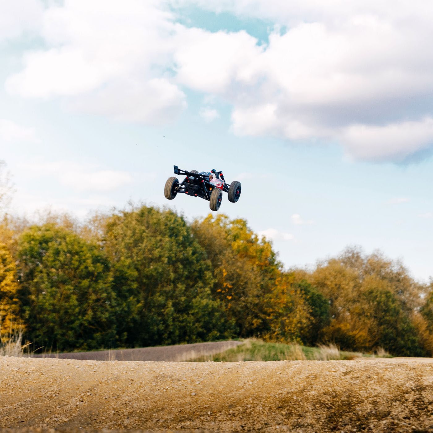 The original, 3S-capable TYPHON™ 4X4 BLX RTR Speed Buggy delivered power, strength, style — and the ability to reach extreme 50+ mph speeds. Now equipped with the high-quality Spektrum™ STX2 radio, it's an even smarter move into 1/8 scale buggy bashing!